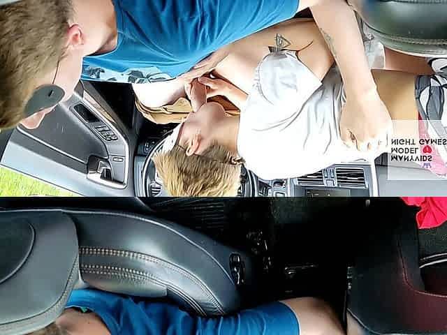 Lesbo game in the car with tattooed babe