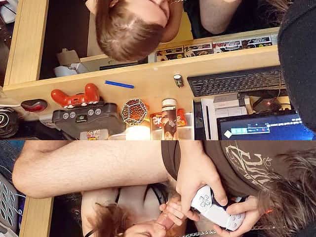 Playing video games, bubble butt, amateur blowjob