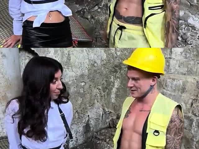 Construction Workers Gangbang Horny Brunette in Ruins Double