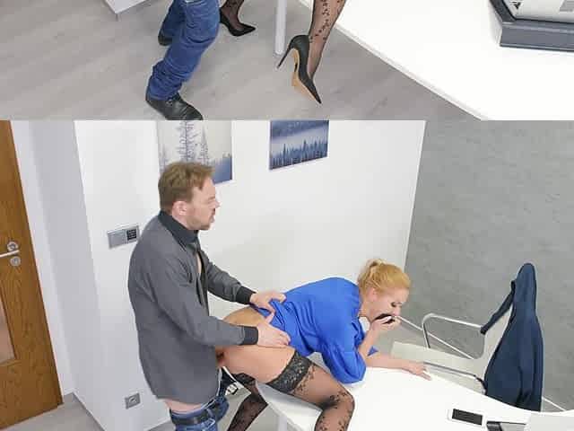 Blonde Cherry Kiss wearing black stockings gets fucked hard