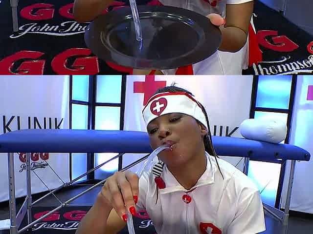 Large tittied latin chick fisted, DAPed, drinking and gushing urinate without her butt