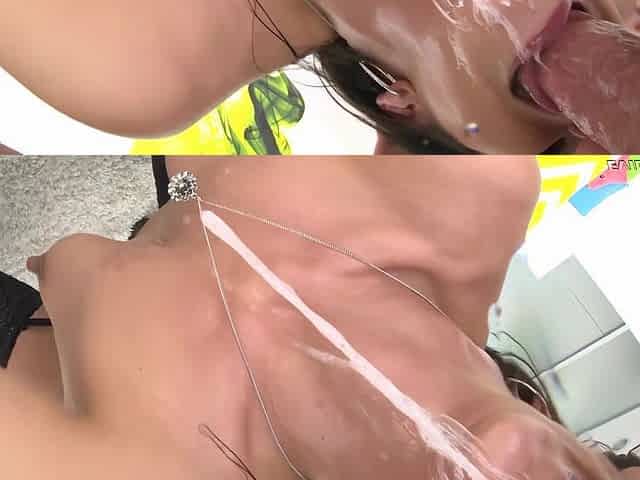 Hot Teens in Blowbang Bukkake and Cum Swallow