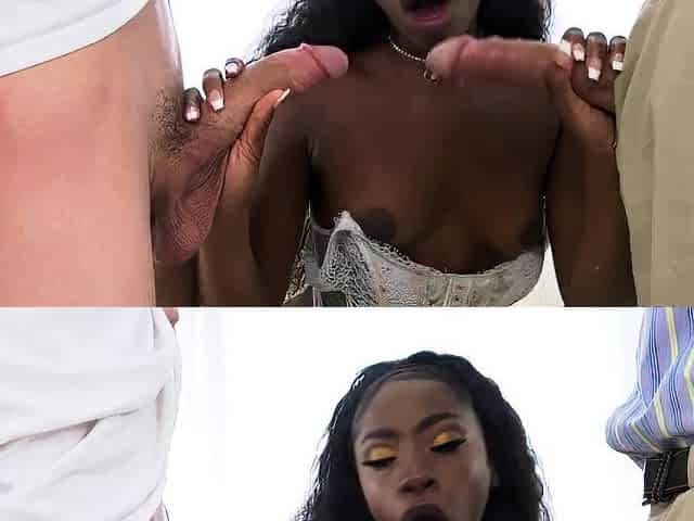 Black stripper takes 2 large ebony knobs at the same time
