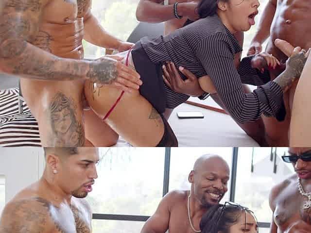 Real Estate Agent Fulfills Her Fantasy and Does an Interracial Gangbang with Her Clients - Yasmina Khan