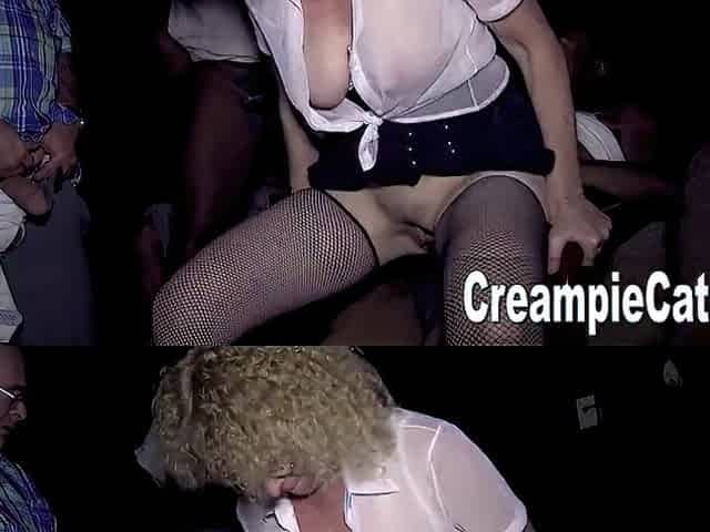 Sexy blonde teen blowjob and gangbanged then creampied