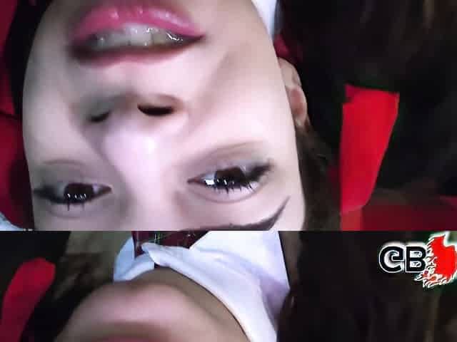 Japanese girl in a red costume and the thick cocks of her friends