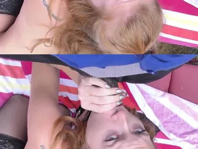 Seductive redhead Violet Monroe delivers a sloppy blow job and takes a facial from Rich Blackrose