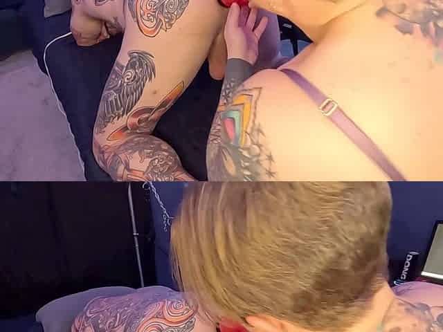 2 Heavily Tattooed Beauties Worship One Hard Inked Penis