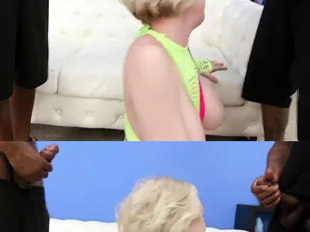 Blonde chick with hot ass wearing lingerie sucking a big cock