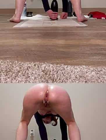 "Wife inserts a very long dildo into the ass"