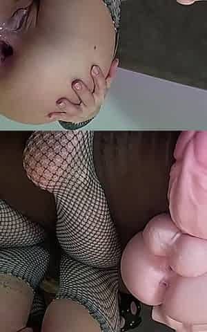 Gaping anal fist fetish lesbo big toy foreplay in bedroom