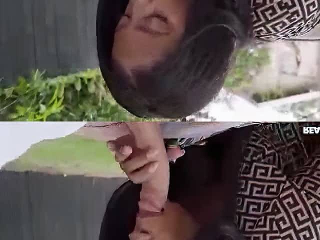 Dolly G enjoys while giving a nice blowjob in the backyard