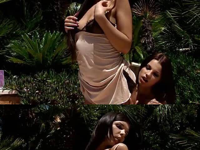 Lonely babe invites her friend to fuck and suck pussy in her garden