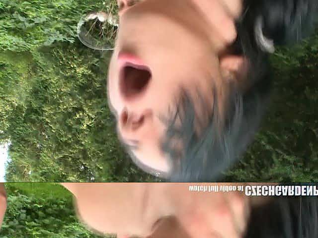 Lewd amateur brunette hair is getting screwed in the backyard in front of many allies, just for joy
