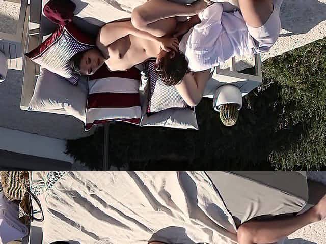 Sweet lesbians Angie Koks and Alexis Brill snog in the back yard