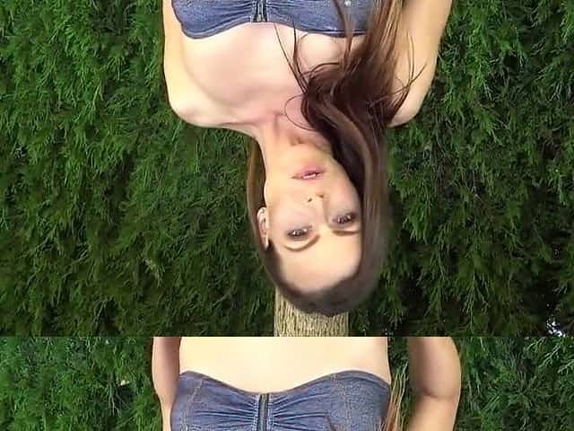 Brunette teen pleases herself in the garden
