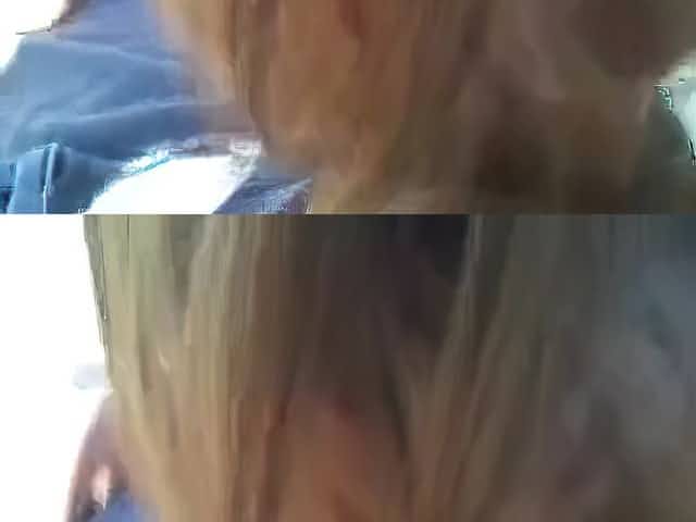 Spying underneath petticoat of my mum working in the garden