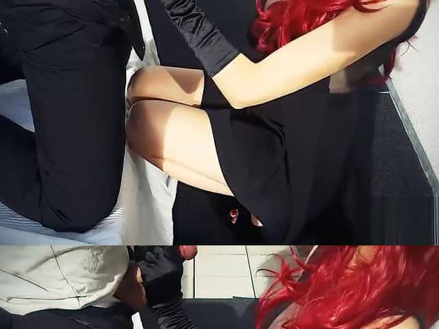 My neighbour's wife gives head in garden and he cums all over her dress HOT