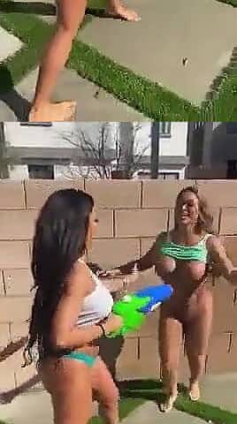 Lesbian sex in a backyard