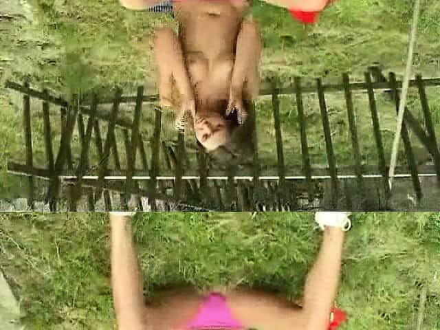 Hairy ass and pussies licked in the garden