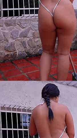 Nudist Exposed maid Exposed housewife Shower country Bikini outdoor public garden butt cunt