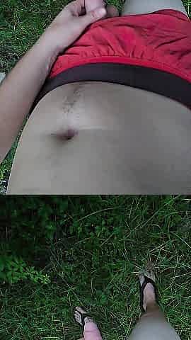 Peeing And Then Cumming In Orange Short Shorts Outside In My Garden