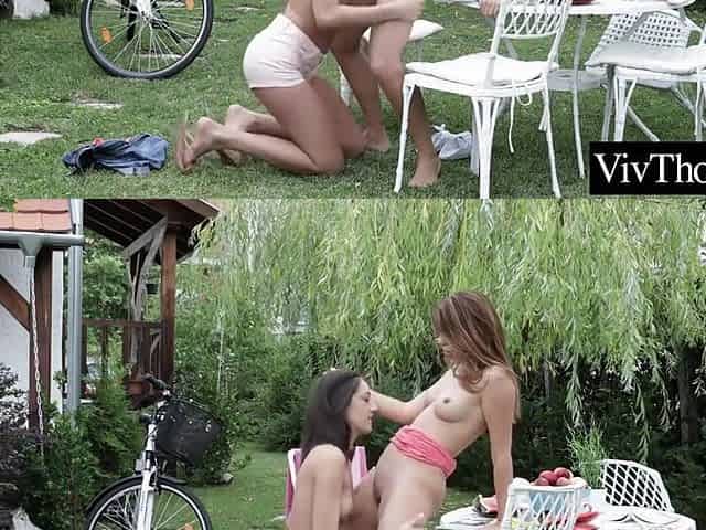 Adorable Blonde & Hot Brunette Have Wild Sex In The Backyard - Vicky Love, Vicky Sex And Viv Thomas