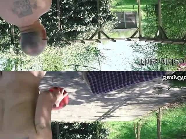 Tattooed Couple Pussy Fucking In The Garden