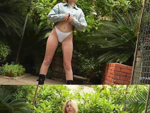 Elegant solo in the garden with a short-haired blonde IrisQ
