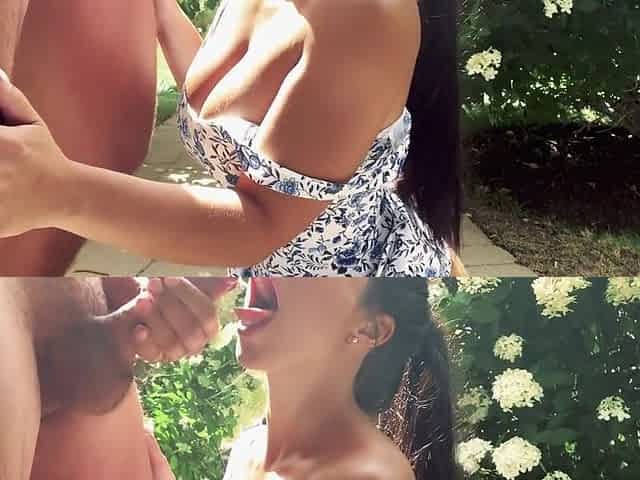 Backyard Blowjob Ends With Cum On Her Face