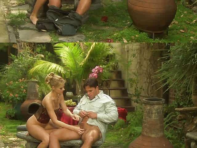 A young blonde girl loves to fuck and enjoy a hard cock in the garden