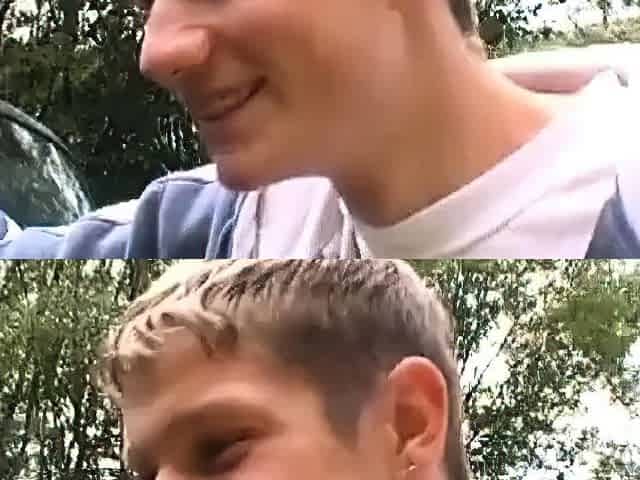 Twink leert den Saft seines Nachbarn im Auto aus