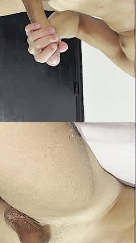 Homemade homo porn. Screwed in the booty with a large dong. This cum in his butt and balls