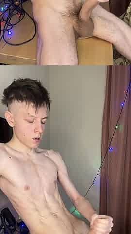 Twink wakes up with a hard knob and begins playing with his ally part. two