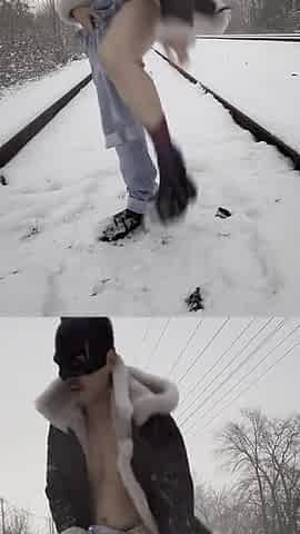 Snowy Track Tease: Muscular Stud Strips Bare, Flexes, and Explodes in Winter Heat