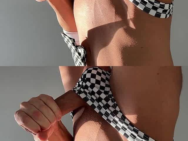 Emo Boy Jerks off His Big Cock in a White Shirt with a Checkered Tie