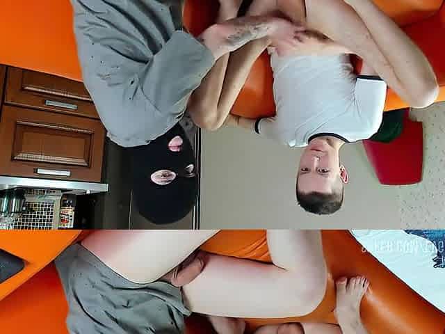 Shy Twink, Nasty Homosexual, Cum On The Daybed