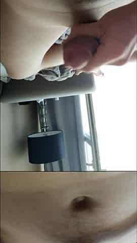 Young Man with a Big Dick Has a Triple Orgasm in the Mirror.