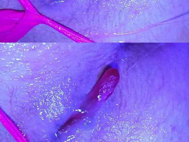 Cute stud gets screwed in a narrow dark hole with a large dong and cum in the rectal hole