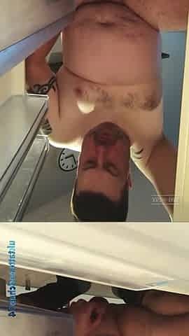 Pierced and Tattoo Chubby Daddy inserts butt plug and slow strokes his small soft cock