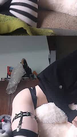 Teen femboy plays with his butt in close-up