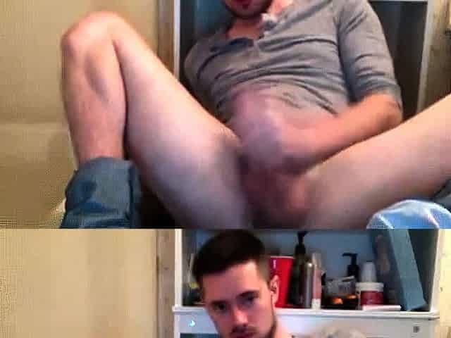 Bareback Student in the WC Takes a Cum Tribute Handjob