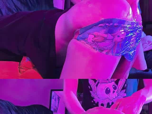 oil, massage, finger in gap with Colombian ejaculating and groaning