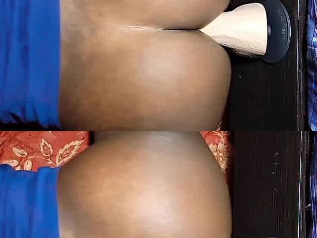 Slutty hairless pig bottom anal play with large butt plugs and toys