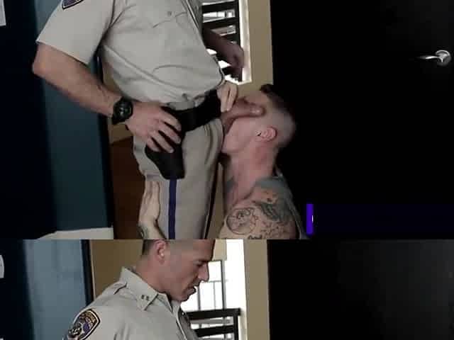 Pervert Officer Coercing Hunky Dealer To Suck And Ride His Cock
