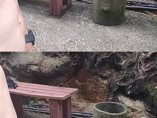 Nude walking in a park on the side of a busy highway and peeing