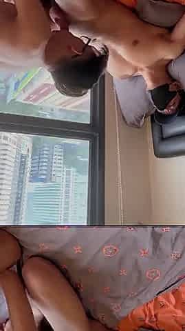 Real Asian twink sucks and fucks his boyfriends asshole at home