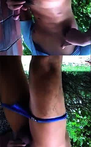 asian twink JO outside on cam (1'48'')