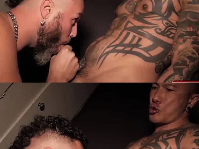 "Tattooed Damian X Dragon Manhandles Bottom Matthew Dragon"