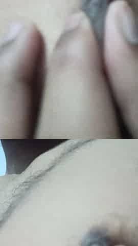 Slim Asian ass jerking off her cock during amateur sex